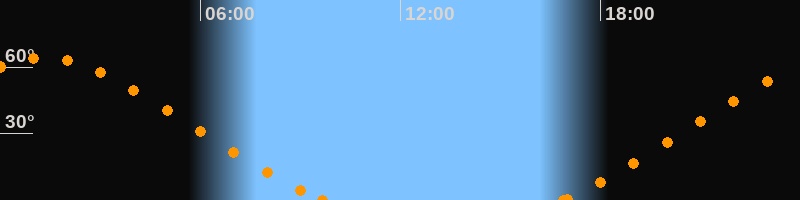Höchster Stand (Kulmination)01:19 Uhr (h = 64.1°)