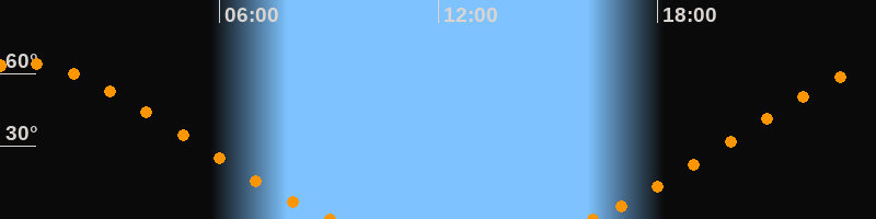 Höchster Stand (Kulmination)00:35 Uhr (h = 64.2°)