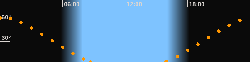 Höchster Stand (Kulmination)00:13 Uhr (h = 64.3°)