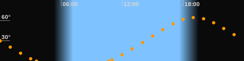 Höchster Stand (Kulmination)19:06 Uhr (h = 64.6°)