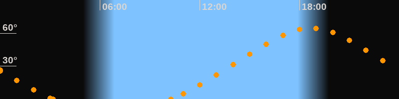 Höchster Stand (Kulmination)18:41 Uhr (h = 64.7°)