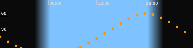 Höchster Stand (Kulmination)18:07 Uhr (h = 64.9°)