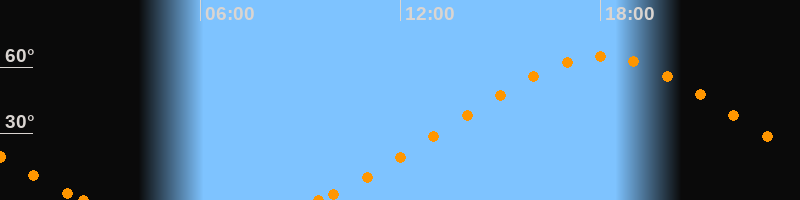 Höchster Stand (Kulmination)18:00 Uhr (h = 64.9°)