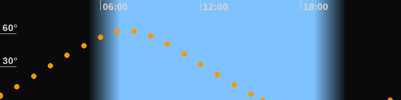 Höchster Stand (Kulmination)07:34 Uhr (h = 62.4°)