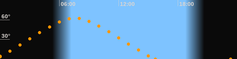 Höchster Stand (Kulmination)07:33 Uhr (h = 62.4°)