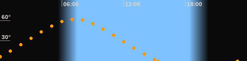 Höchster Stand (Kulmination)07:13 Uhr (h = 62°)