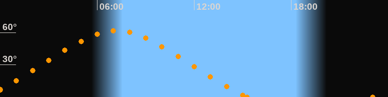 Höchster Stand (Kulmination)07:09 Uhr (h = 61.9°)
