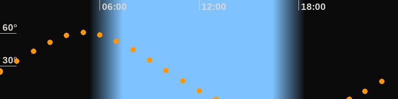 Höchster Stand (Kulmination)05:03 Uhr (h = 60.6°)