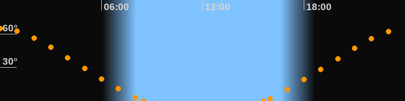 Höchster Stand (Kulmination)00:00 Uhr (h = 64.7°)
