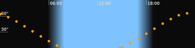 Höchster Stand (Kulmination)23:11 Uhr (h = 65.3°)
