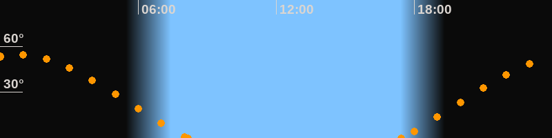 Höchster Stand (Kulmination)00:44 Uhr (h = 54.6°)