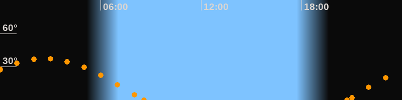 Höchster Stand (Kulmination)02:40 Uhr (h = 37.5°)