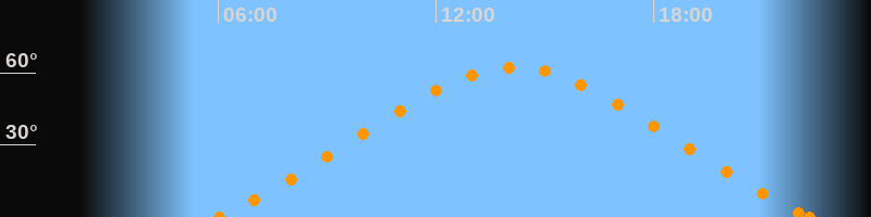 Höchster Stand (Kulmination)14:11 Uhr (h = 62.3°)