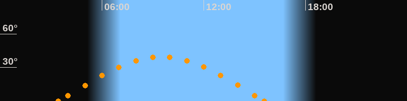 Höchster Stand (Kulmination)09:30 Uhr (h = 39.6°)