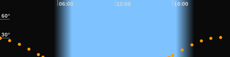 Höchster Stand (Kulmination)23:02 Uhr (h = 31.2°)