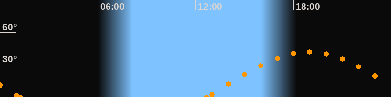Höchster Stand (Kulmination)18:55 Uhr (h = 42.1°)