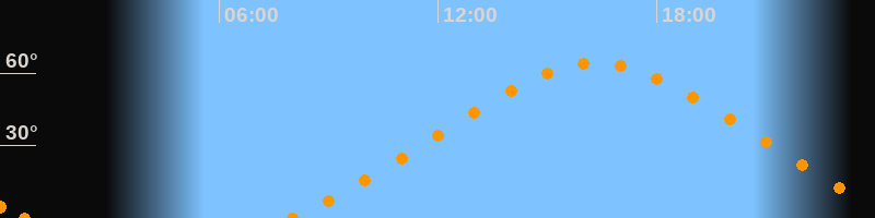 Höchster Stand (Kulmination)16:21 Uhr (h = 64°)