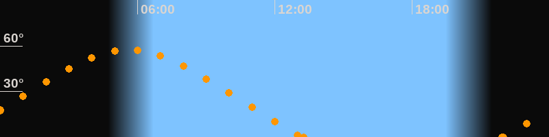 Höchster Stand (Kulmination)05:37 Uhr (h = 57.5°)