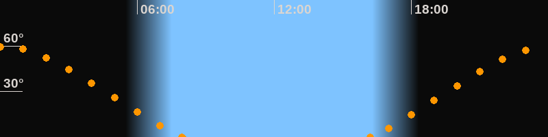 Höchster Stand (Kulmination)00:01 Uhr (h = 59.6°)