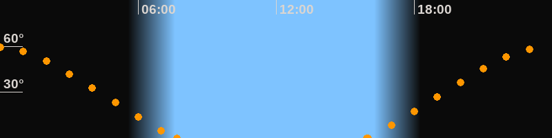 Höchster Stand (Kulmination)23:45 Uhr (h = 59.5°)