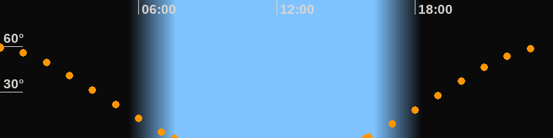 Höchster Stand (Kulmination)23:39 Uhr (h = 59.4°)