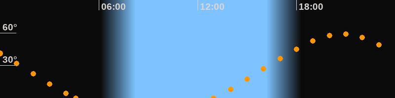 Höchster Stand (Kulmination)20:44 Uhr (h = 59°)