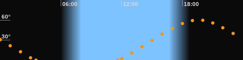 Höchster Stand (Kulmination)19:33 Uhr (h = 60.3°)