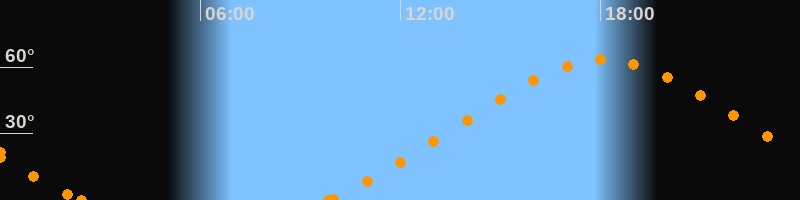 Höchster Stand (Kulmination)18:07 Uhr (h = 63.3°)