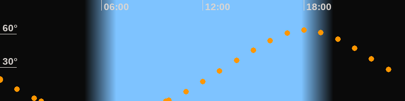 Höchster Stand (Kulmination)18:05 Uhr (h = 63.4°)