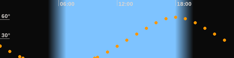 Höchster Stand (Kulmination)18:00 Uhr (h = 63.6°)