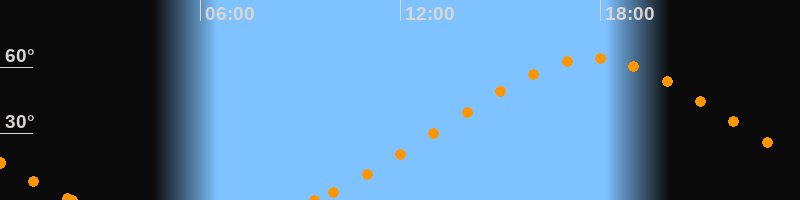 Höchster Stand (Kulmination)17:46 Uhr (h = 64°)
