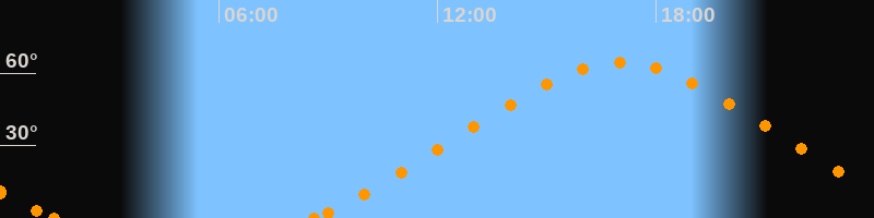 Höchster Stand (Kulmination)17:00 Uhr (h = 64.5°)