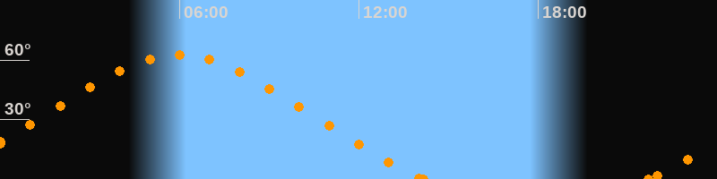 Höchster Stand (Kulmination)05:57 Uhr (h = 62.7°)