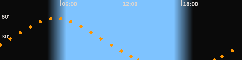 Höchster Stand (Kulmination)05:28 Uhr (h = 62.7°)
