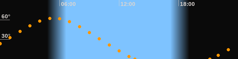 Höchster Stand (Kulmination)05:24 Uhr (h = 62.7°)