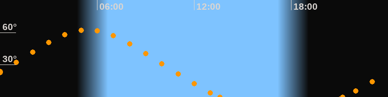 Höchster Stand (Kulmination)05:24 Uhr (h = 62.7°)
