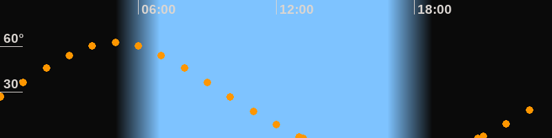 Höchster Stand (Kulmination)04:59 Uhr (h = 62.6°)
