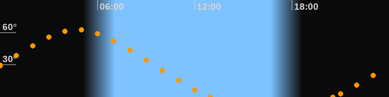 Höchster Stand (Kulmination)04:46 Uhr (h = 62.6°)