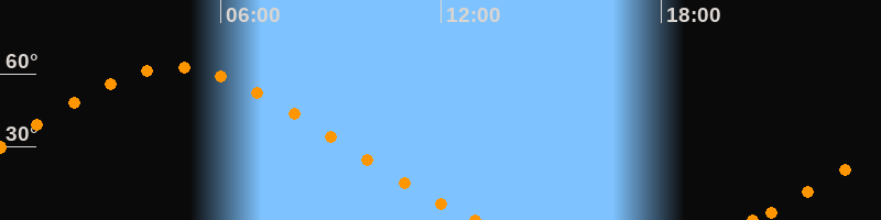 Höchster Stand (Kulmination)04:43 Uhr (h = 62.6°)