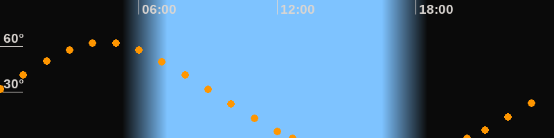 Höchster Stand (Kulmination)04:28 Uhr (h = 62.7°)