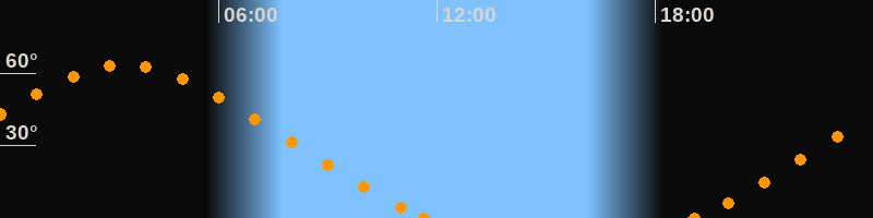 Höchster Stand (Kulmination)03:24 Uhr (h = 63.2°)