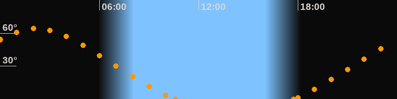 Höchster Stand (Kulmination)02:12 Uhr (h = 64.3°)