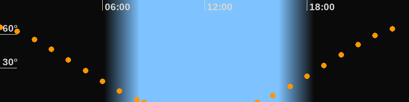 Höchster Stand (Kulmination)23:43 Uhr (h = 66.2°)