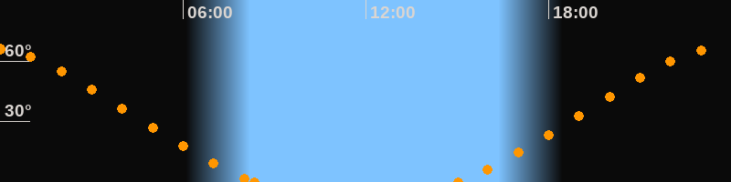 Höchster Stand (Kulmination)23:38 Uhr (h = 66.3°)