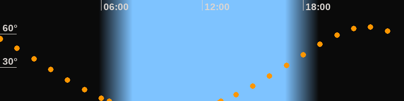 Höchster Stand (Kulmination)21:46 Uhr (h = 66.4°)