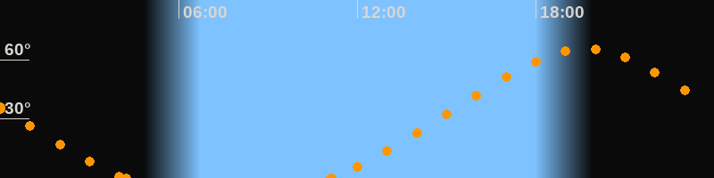 Höchster Stand (Kulmination)19:39 Uhr (h = 65.5°)