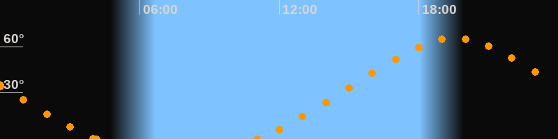 Höchster Stand (Kulmination)19:33 Uhr (h = 65.4°)