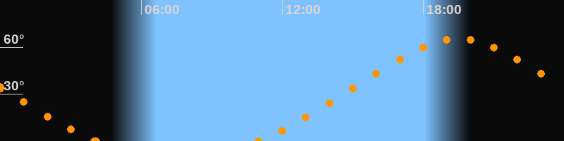 Höchster Stand (Kulmination)19:31 Uhr (h = 65.4°)