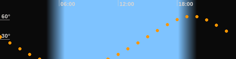 Höchster Stand (Kulmination)19:28 Uhr (h = 65.3°)