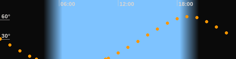 Höchster Stand (Kulmination)19:10 Uhr (h = 65°)
